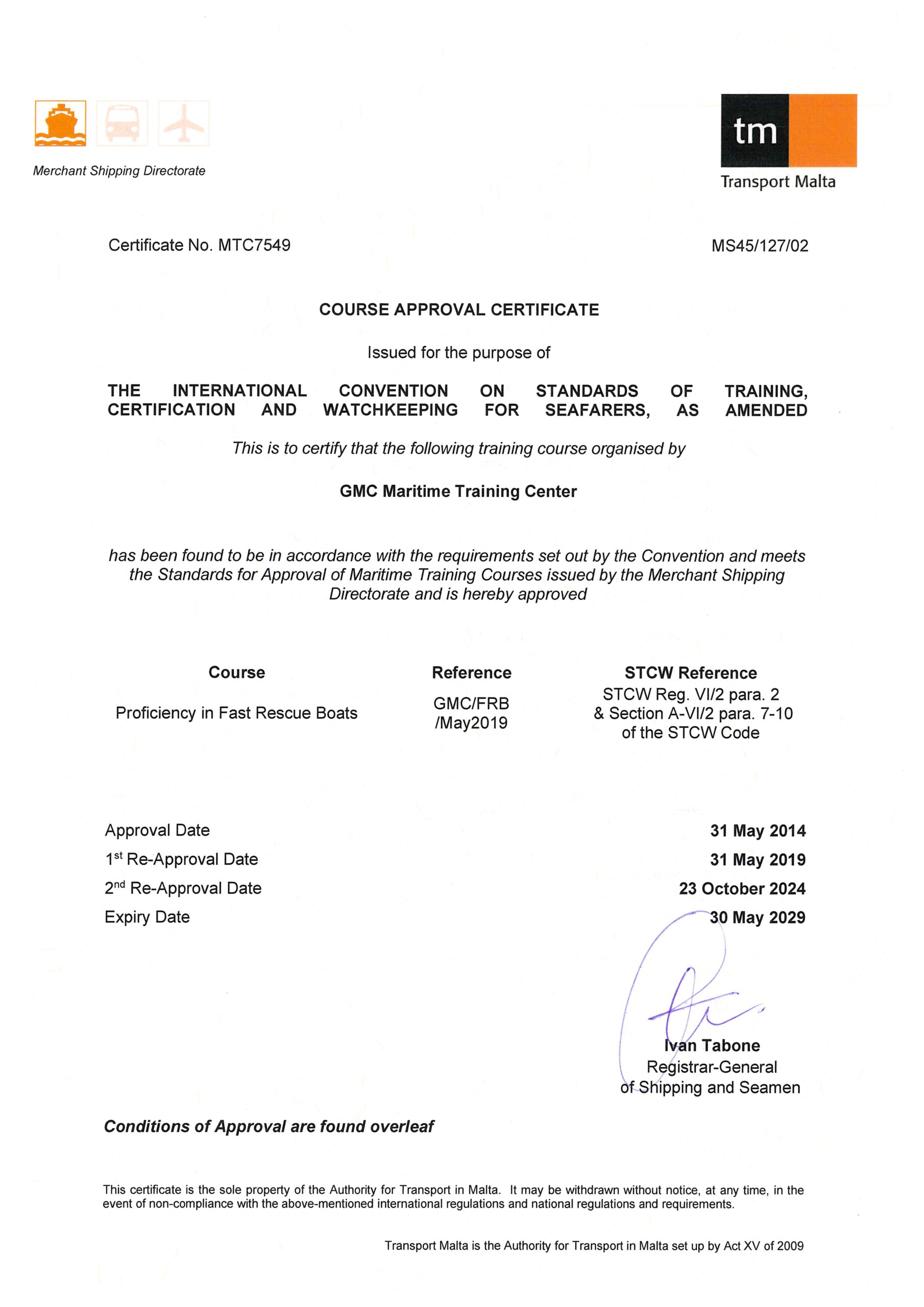 Accreditations: GMC Maritime Training Center & Academy is approved as an authorized training center to conduct maritime training courses on behalf of the Cyprus Flag, Malta, Finnish Transport and Communications Agency (Traficom), Panama, the Republic of the Marshall Islands & the Bahamas Maritime Authority under the STCW 1978 Convention as amended, defining the requirements and procedures by which regulatory training and certification for seagoing mariners should be provided by Flag Administrations and their authorized training centers